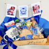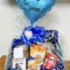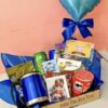 A cesta irá arrumadinha e com laço.