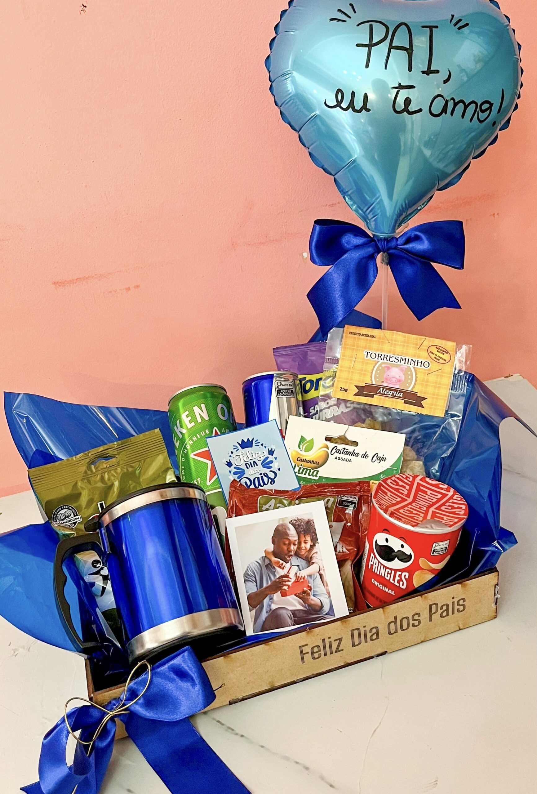 Você tem a opção de adicionar um cartão com mensagem que é gratuito, e irá de brinde junto à cesta.